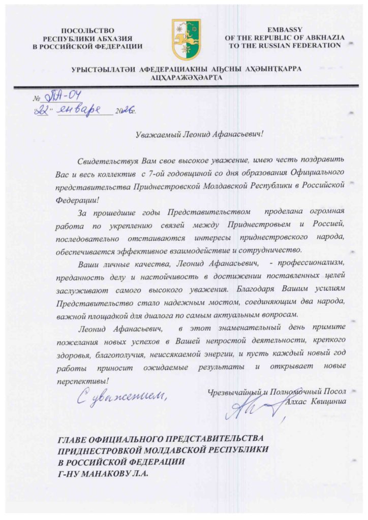 Как отметил Леонид Манаков, сегодня здесь присутствует вокруг образовался широкий круг друзей Официального представительства — государственных и общественных деятелей, ученых, экспертов, соотечественников, которые болеют душой за судьбу Приднестровья и помогают его гражданам в решении самых различных вопросов. Это и Союз казаков России, и Международный совет российских соотечественников, и Международная ассоциация русскоязычных адвокатов, и Гильдия российских адвокатов, Международное движение русофилов, Общественная палата РФ, Российский координационный совет мигрантских организаций и сообществ, Российское профессорское собрание, Ассоциация технических университетов, Императорское палестинское православное общество, Общественная палата ЕАЭС и др..